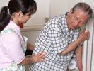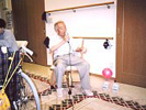 足踏み訓練、障害物歩行訓練、スクワット、イスや車イスからの立ち上がり訓練、筋肉負荷運動、握力・腕力強化、発声・発音訓練を行います。